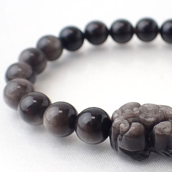 シルバーオブシディアン ラウンド 10mm 内周15cm ブレスレット [X6309]