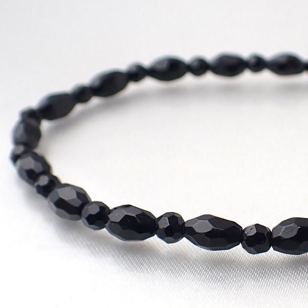 【ディワリSALE】ブラックトルマリン ボタン 5mm 内周15cm ブレスレット [X7492]