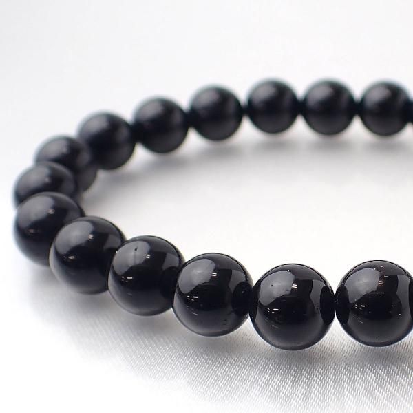 【ディワリSALE】ブラックトルマリン ラウンド 8mm 内周15.5cm ブレスレット [XD0214]