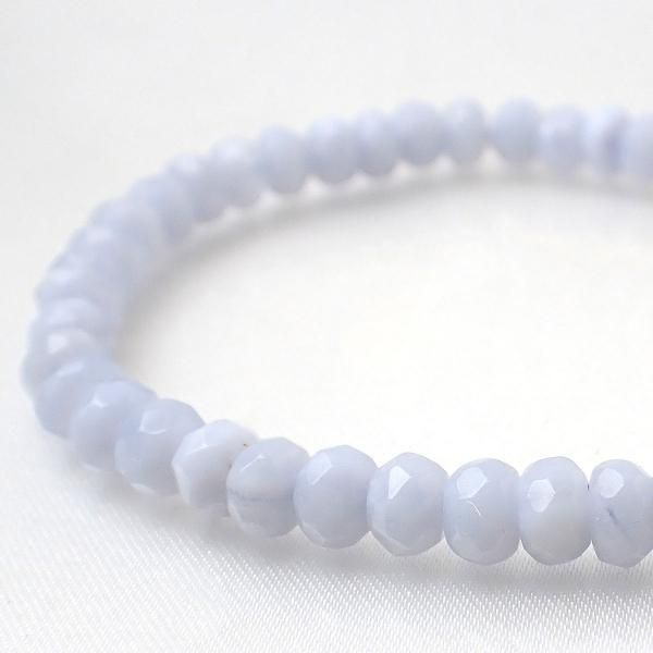 【期間限定セール】ブルーレースアゲート ボタンカット 5.5 - 6mm 内周16.5cm ブレスレット [XD0499]