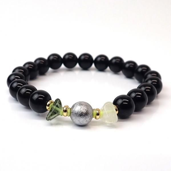 ギベオン & モルダバイト & リビアングラス & モリオン デザインブレスレット