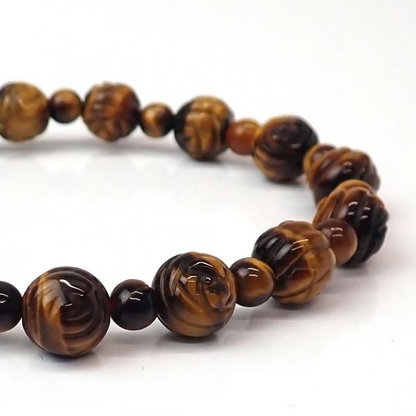 光の反射によって縞模様が虎の眼のように見える「シャトヤンシー (光線状)」 という独特な光を放つのが特徴です。虎の目を連想させることから名付けられ、古くから虎の眼のように「すべてを見通す眼」と考えられてきました。物事の本質を見抜き、成功を掴み取る意味があると信じられており、金運・仕事運に良い石と言われています。
