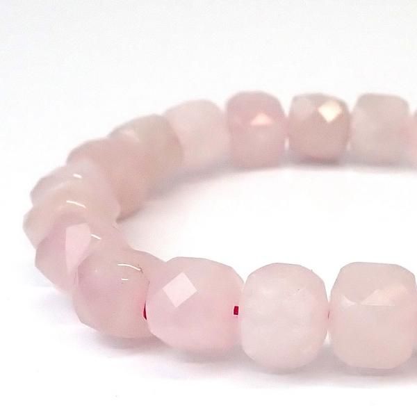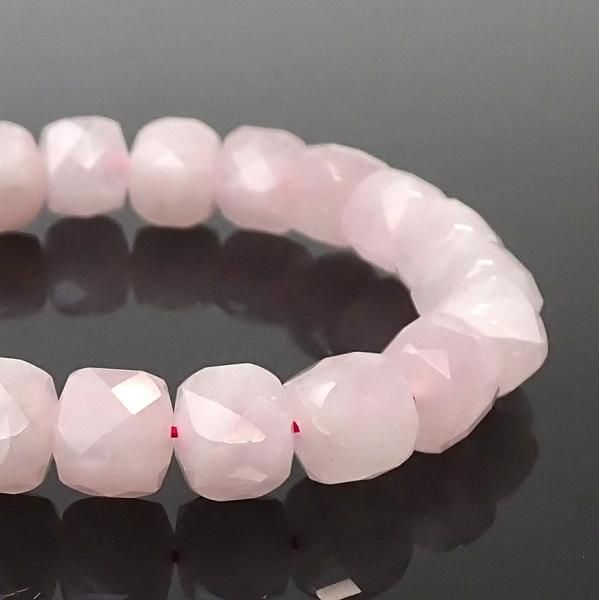 ローズクォーツ キューブカット 8mm 内周16cm ブレスレット [X3027]