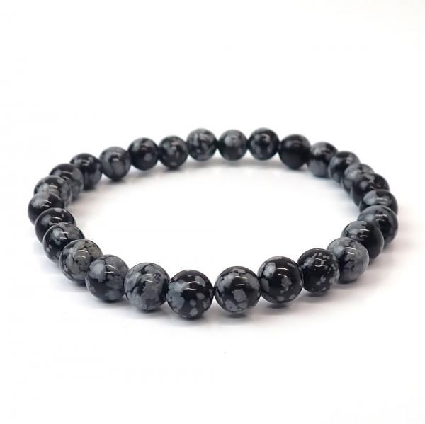 スノーフレークオブシディアン ラウンド 6mm 内周15cm ブレスレット [X3085]