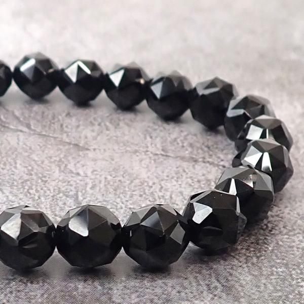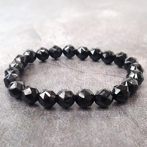 ブラックスピネル スターカット 8mm 内周16cm ブレスレット [X3143]