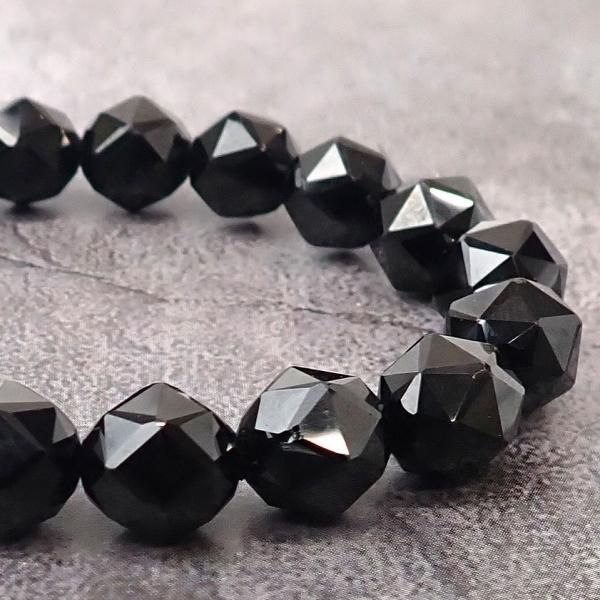 ブラックスピネル スターカット 10mm 内周15cm ブレスレット [X3144]