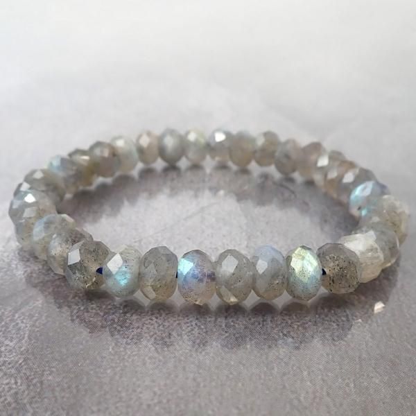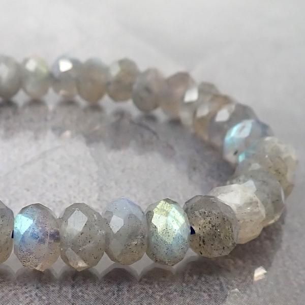 ラブラドライト ボタンカット 8mm 内周15.5cm ブレスレット [X3580]