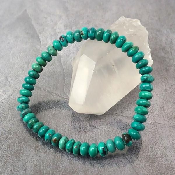 ターコイズ ボタン 6mm 内周15.5cm ブレスレット [X3638]