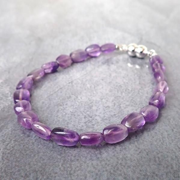 アメジスト タンブル 5 - 6mm 内周15cm 磁石式ブレスレット [X4137]