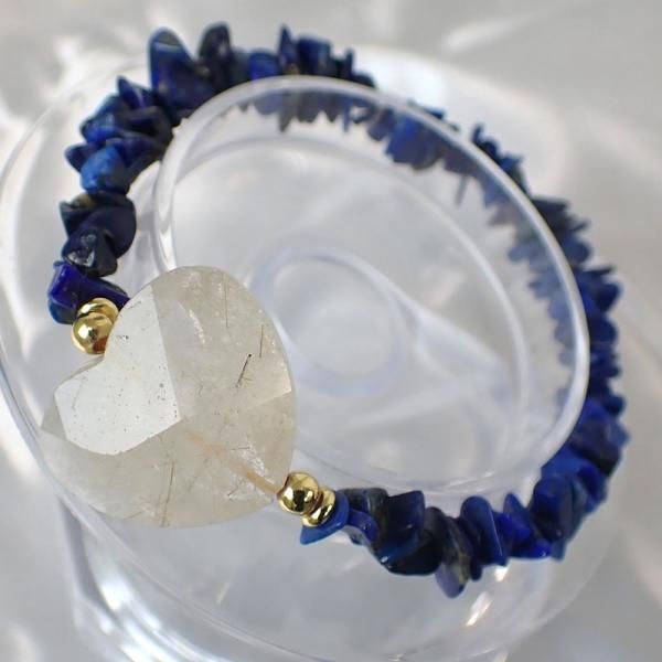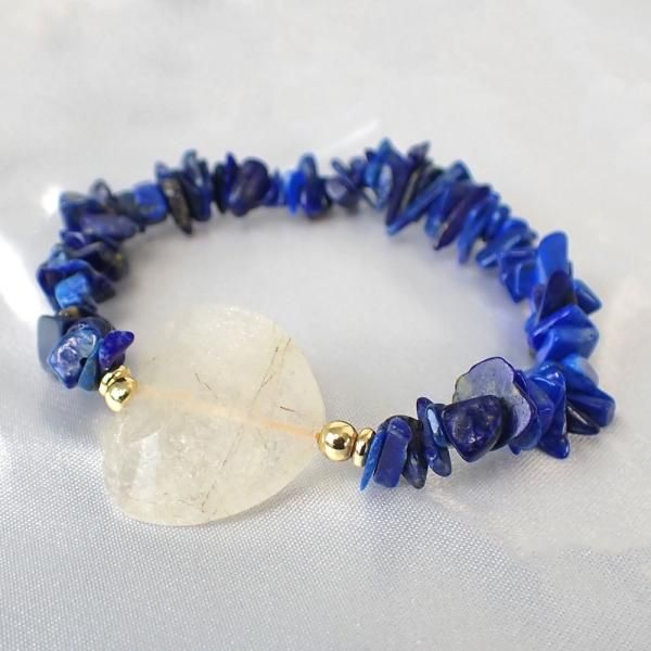 ルチルクォーツ & ラピスラズリ 内周16cm ブレスレット [X4314]
