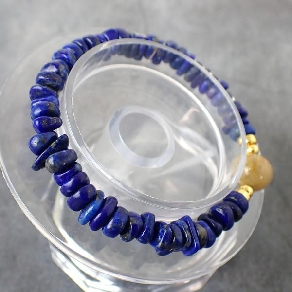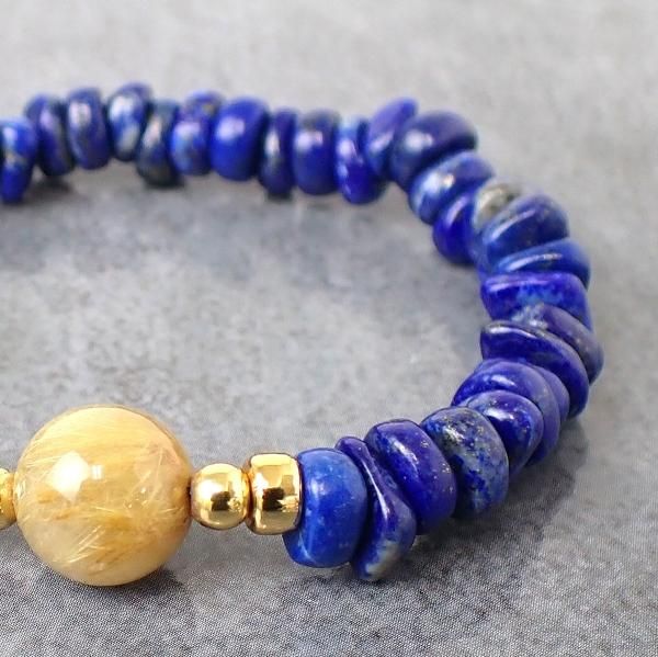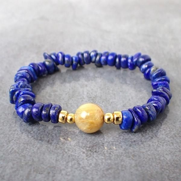 ゴールドルチルクォーツ & ラピスラズリ 内周15cm ブレスレット [X4435]