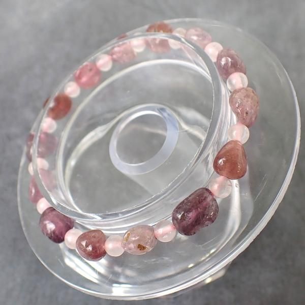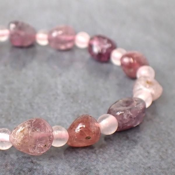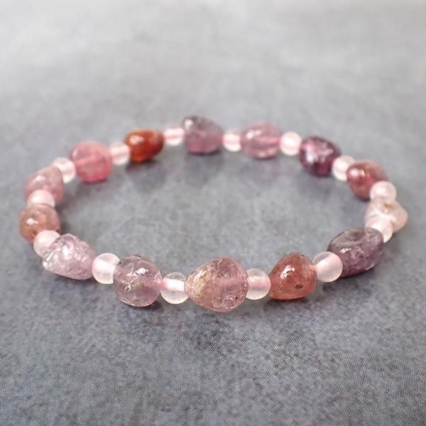 ミックスカラースピネル & ローズクォーツ 内周15cm ブレスレット [X4462]