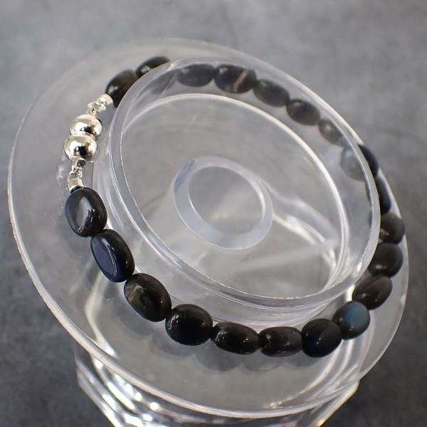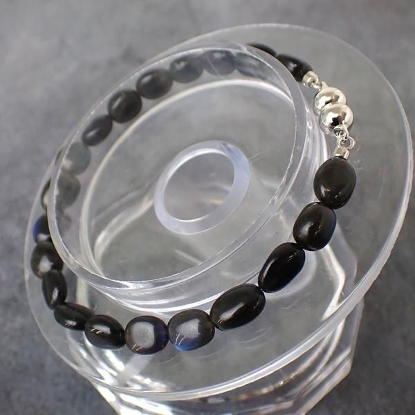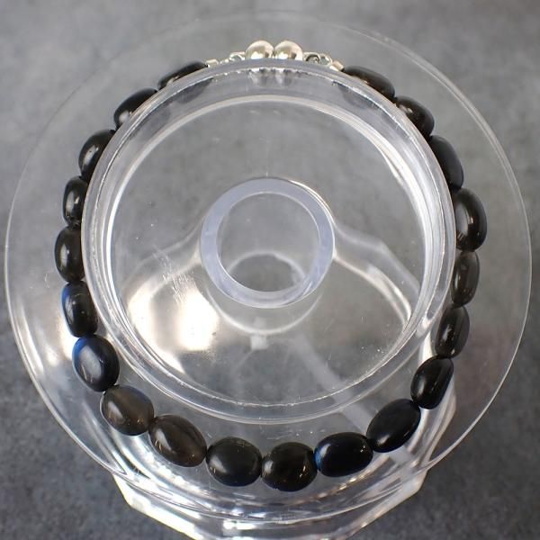 ブラックラブラドライト タンブル 6.5mm 内周16.5cm ブレスレット [X4526]