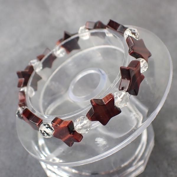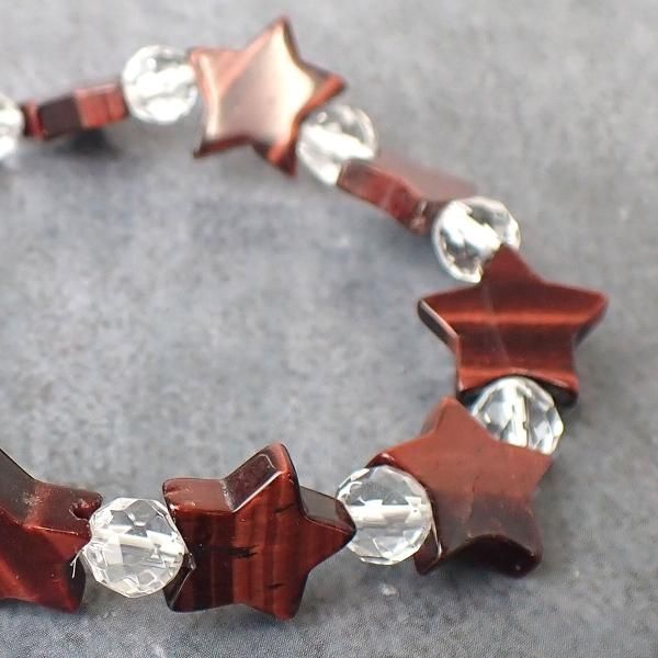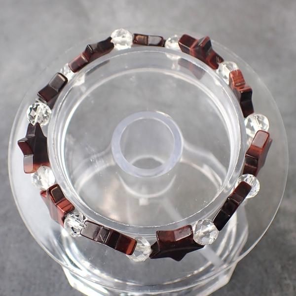 レッドタイガーアイ スター & 水晶 デザインブレスレット 内周16cm [X4582]