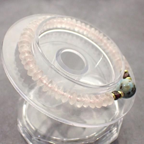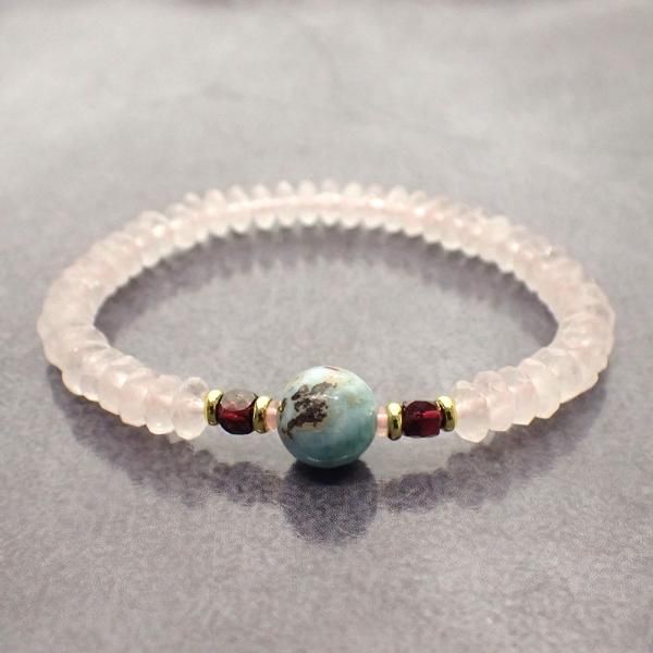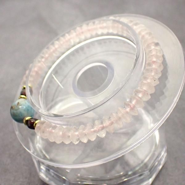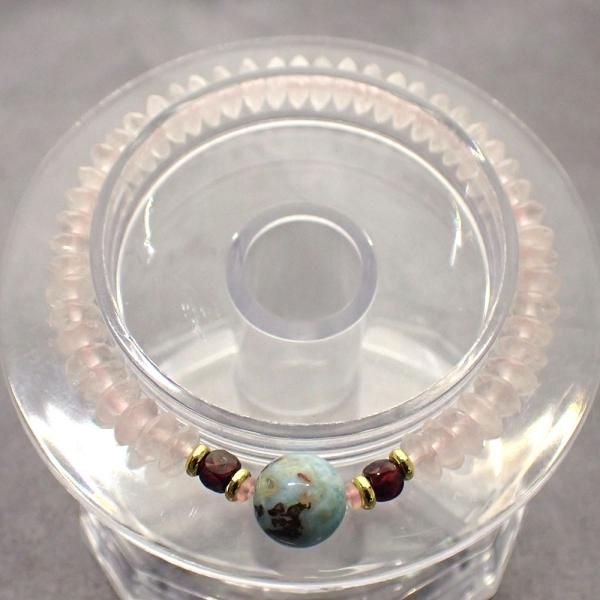 ラリマー & ガーネット & ローズクォーツ デザインブレスレット 内周15.5cm [X4603]