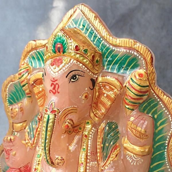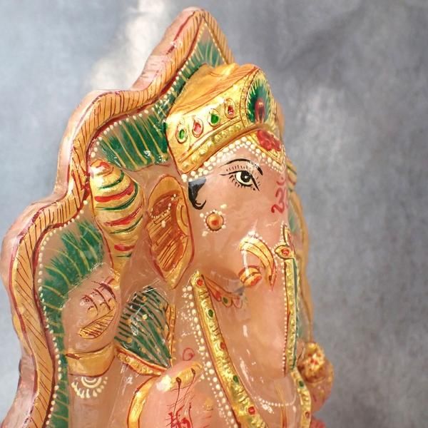 [10cm超サイズ] ローズクォーツ ガネーシャ 縦190mm x 横170mm x 奥60mm [WOK272]