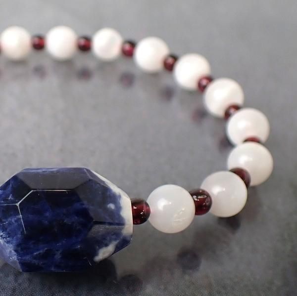 ソーダライト & ガーネット & ムーンストーン デザインブレスレット 内周16cm [X4733]