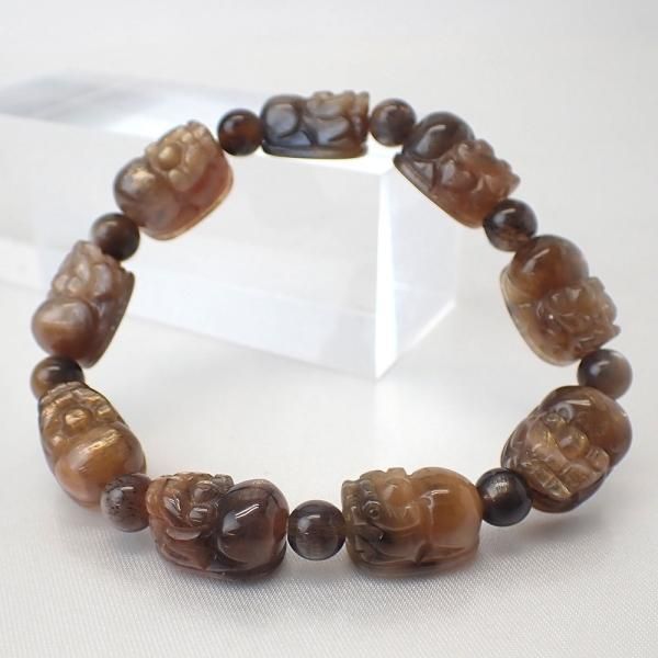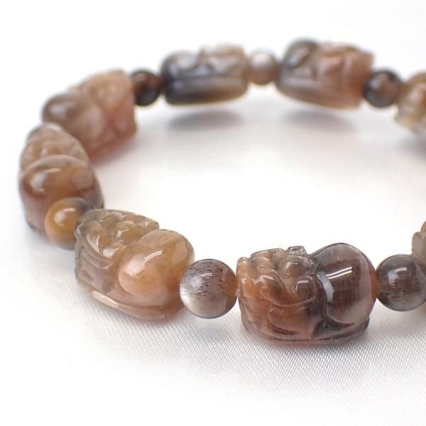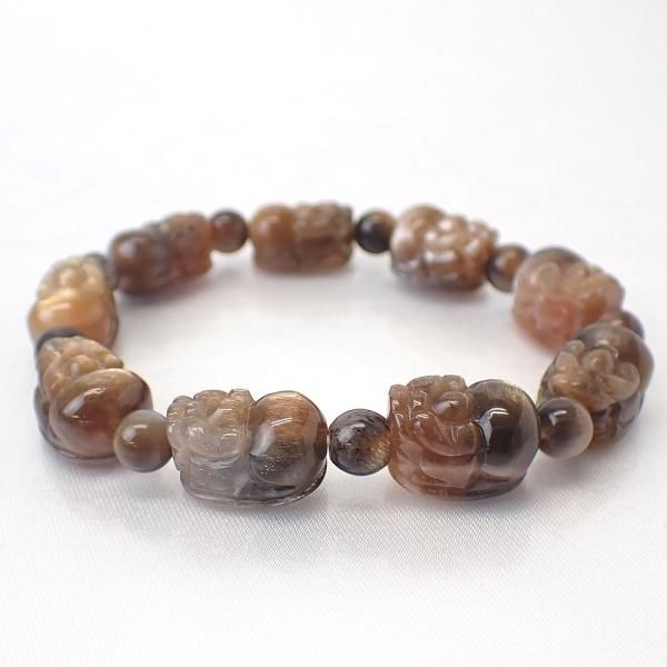 サンストーン 貔貅(ひきゅう) デザインブレスレット 内周15.5cm [W006]