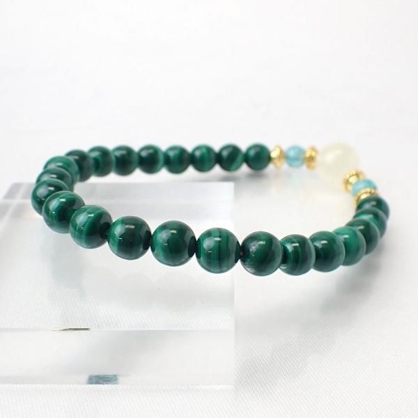 リビアングラス & アパタイト & マラカイト デザインブレスレット 内周15cm [X5077]