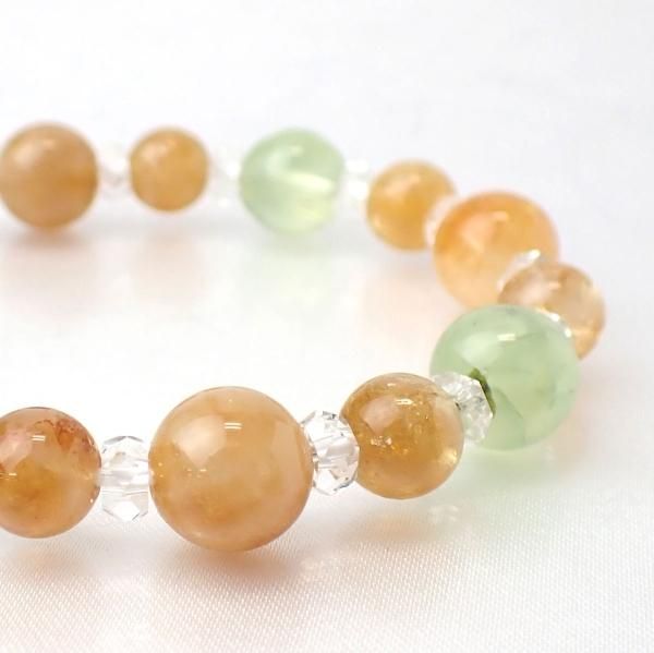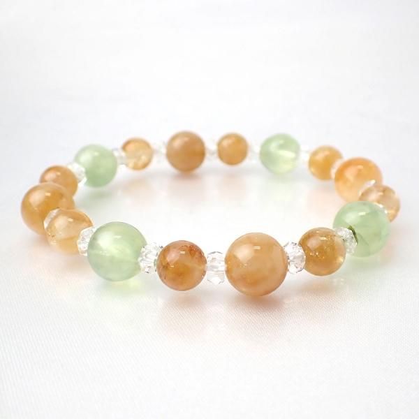 シトリン & プレナイト & 水晶 デザインブレスレット 内周15.5cm [X5325]