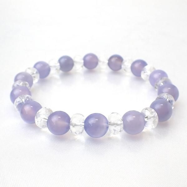ラベンダーカルセドニー & 水晶 デザインブレスレット 内周14.5cm [X5391]
