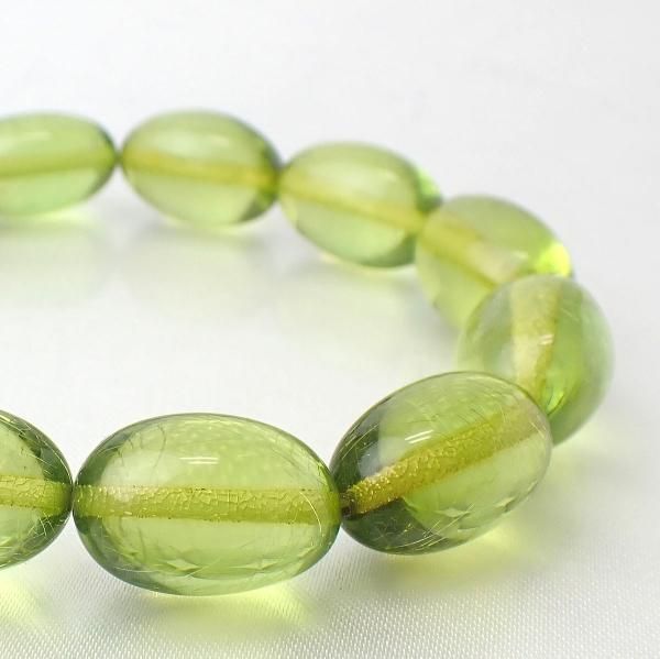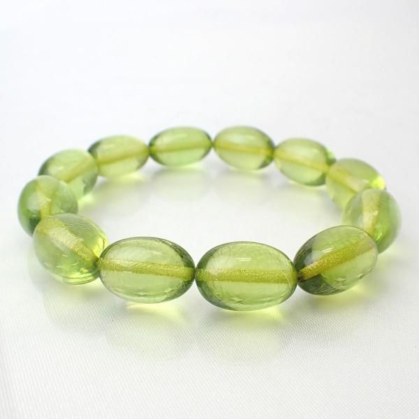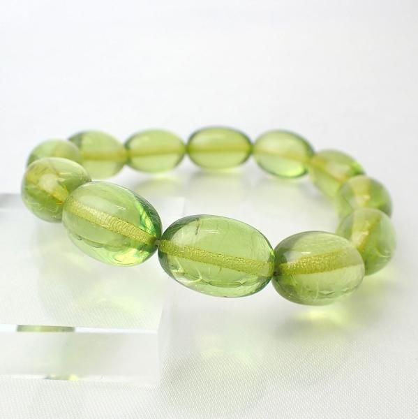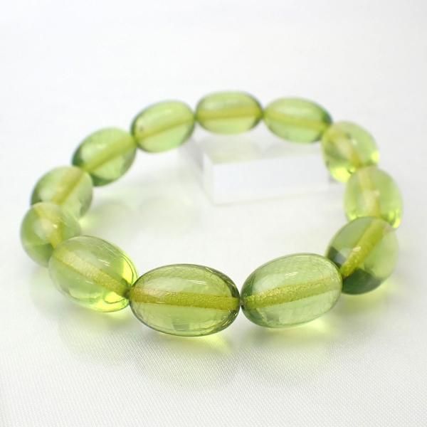 グリーンアンバー オリーブ 10.5 - 11.5mm 内周16.5cm ブレスレット [X5153]