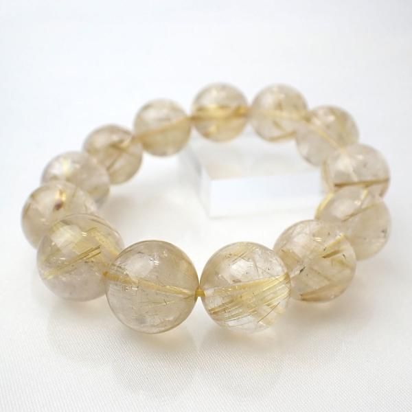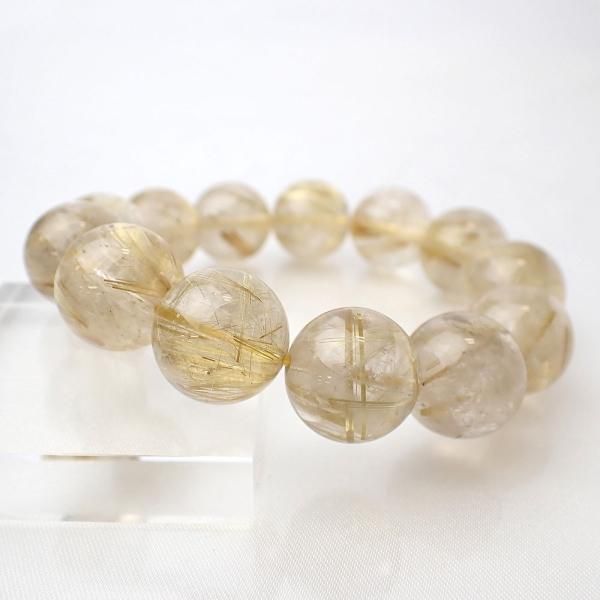 ゴールドルチルクォーツ ラウンド 15 - 15.5mm 内周15cm ブレスレット [X5227]