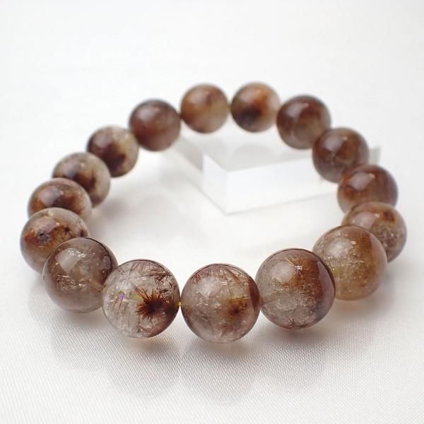 フラワールチルクォーツ ラウンド 13 - 12.5mm 内周15.5cm ブレスレット [X5230]