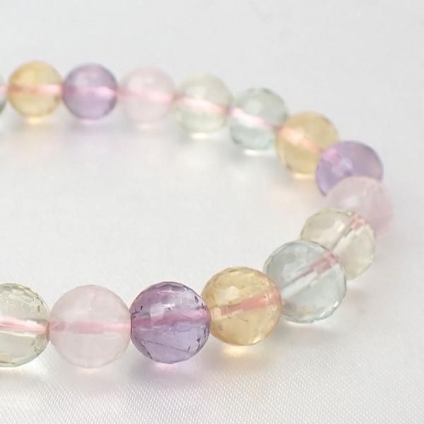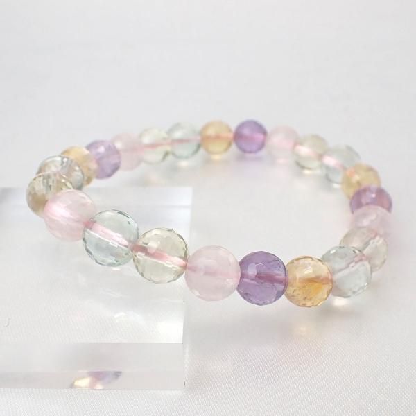 ミックスクォーツ ラウンドカット 8 - 8.5mm 内周15.5cm ブレスレット [X5386]