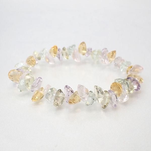 ミックスクォーツ オーバルカット 7.5 - 8mm 内周13.5cm ブレスレット [X5378]