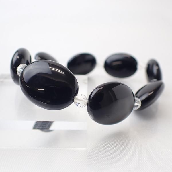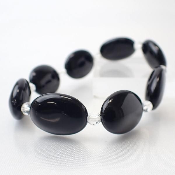 ブラックオニキス オーバル & 水晶 デザインブレスレット 内周16cm [X5807]