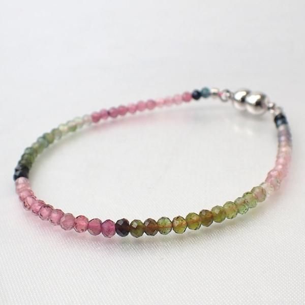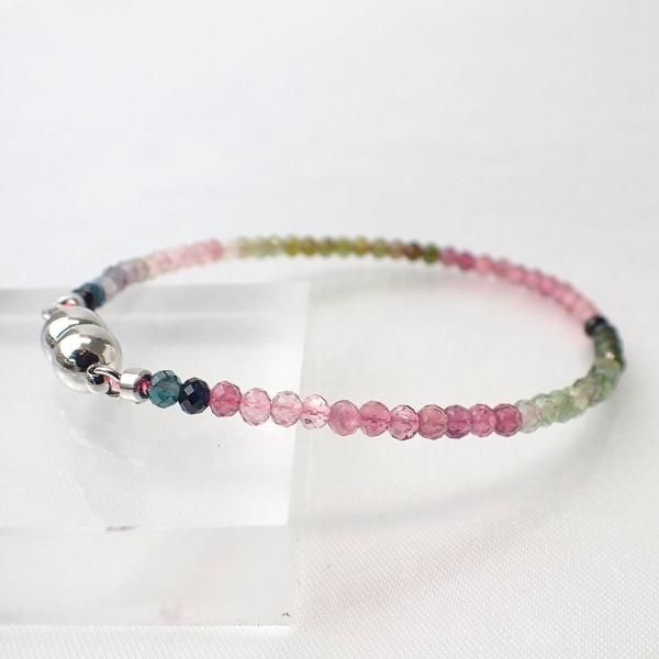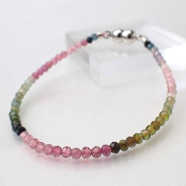 ミックストルマリン ボタンカット 3mm 内周15.5cm 磁石式ブレスレット [X5826]