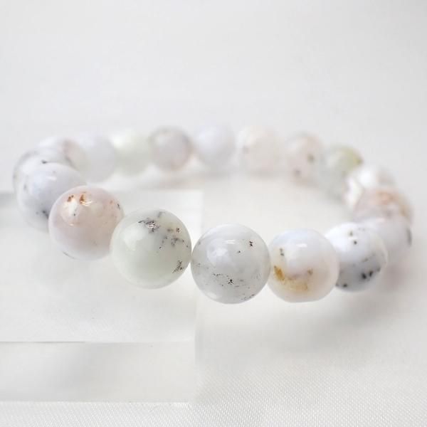 ホワイトオパール ラウンド 10mm 内周15cm ブレスレット [X6013]