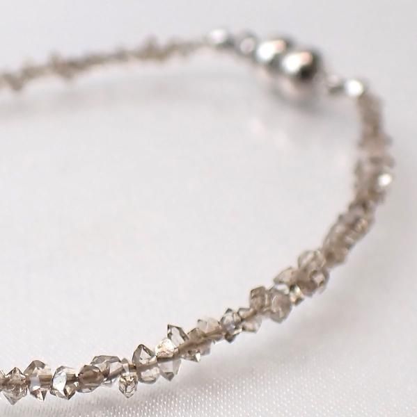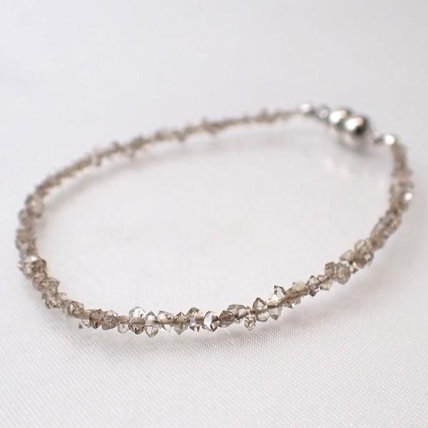 ブラウンオーラハーキマーダイヤモンド水晶 ラフシェイプ 3 - 3mm 内周16 - 16.5cm 磁石式ブレスレット [X6806]