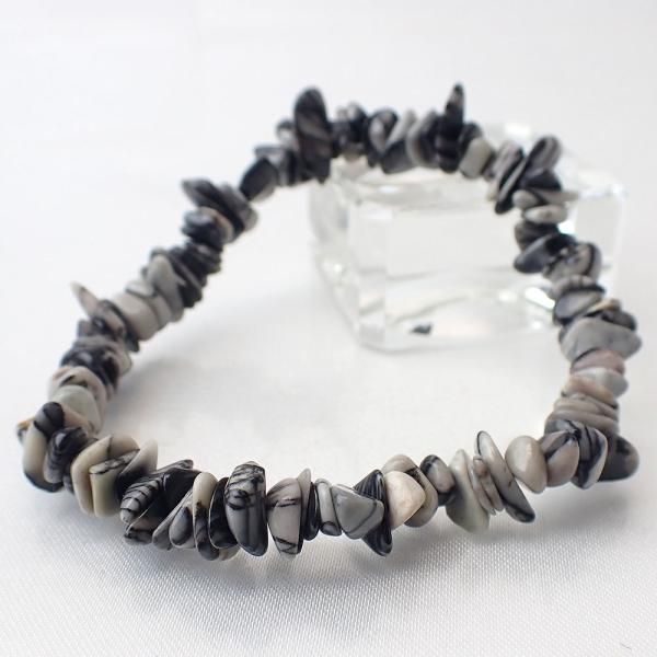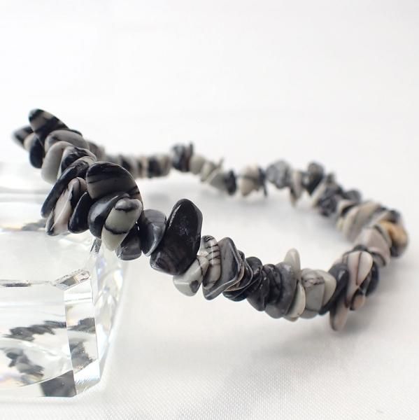 ゼブラジャスパー ナゲット 5 - 9mm 内周15cm ブレスレット [X6840]
