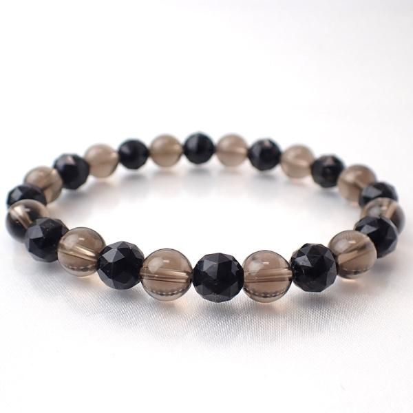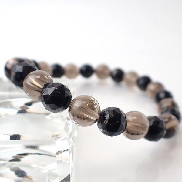 ブラックマイカ & スモーキークォーツ デザインブレスレット 内周16cm [X6871]