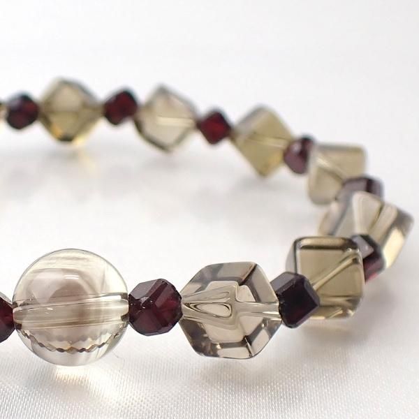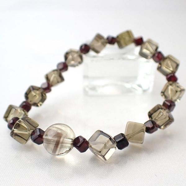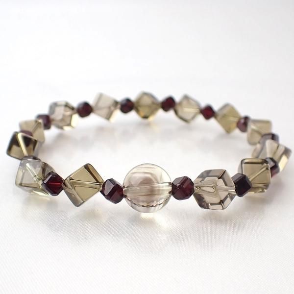 シトリンファントム & スモーキークォーツ & ガーネット デザインブレスレット 内周15cm [X6874]