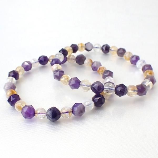 シトリン & アメジスト デザインブレスレット 内周15.5cm [X7296]