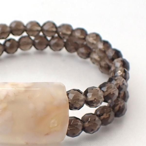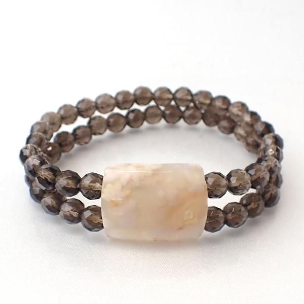 サクラメノウ & スモーキークォーツ デザインブレスレット 内周15cm [X7339]