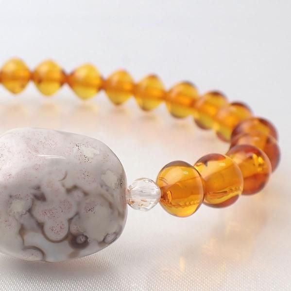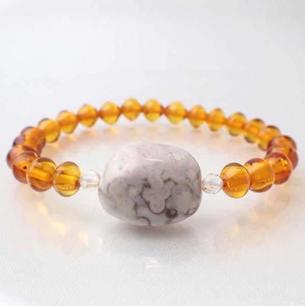 アンバー & ボツワナアゲート デザインブレスレット 内周15 - 15.5cm [X7355]