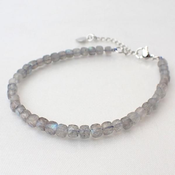 ラブラドライト キューブカット 4mm ブレスレット [X7533]