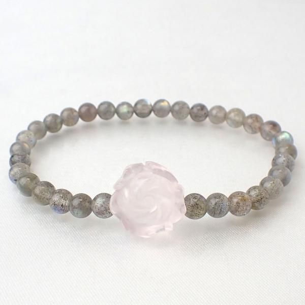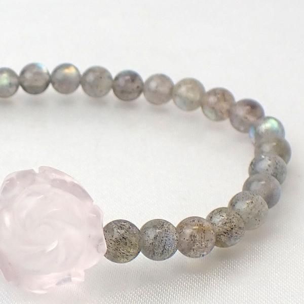 ローズクォーツ 薔薇 & ラブラドライト デザインブレスレット 内周15cm [X7678]