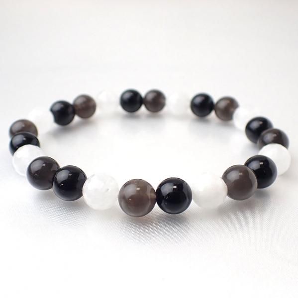 モリオン & ヒカリ・アグニ・マニタイト & スノーマニカラン水晶 [8ミリ] デザインブレスレット 内周16.5cm [X7768]