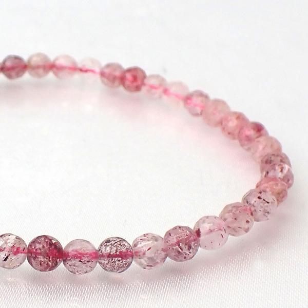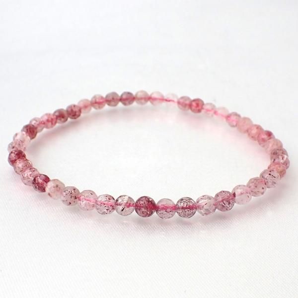 ストロベリークォーツ ラウンドカット 4mm 内周15cm ブレスレット [X7847]