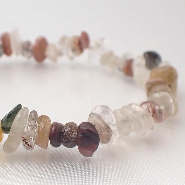 ミックスルチルクォーツ ナゲット 6 - 8mm 内周15cm ブレスレット [X7978]