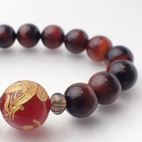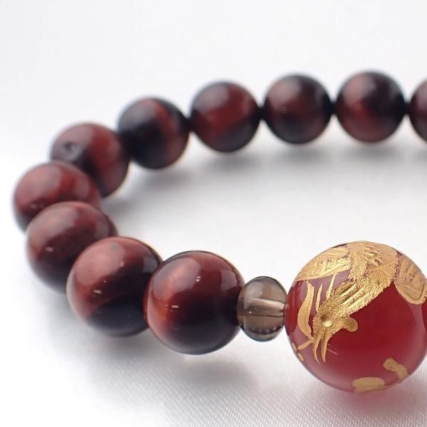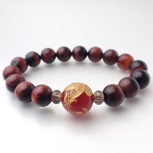 【GWセール】レッドアゲート 朱雀 & レッドタイガーアイ デザインブレスレット 内周15cm [X8123]