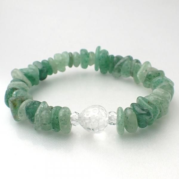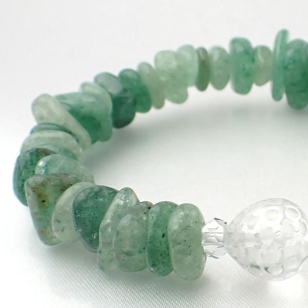 【GWセール】グリーンストロベリークォーツ & 水晶 デザインブレスレット 内周15cm [X8126]