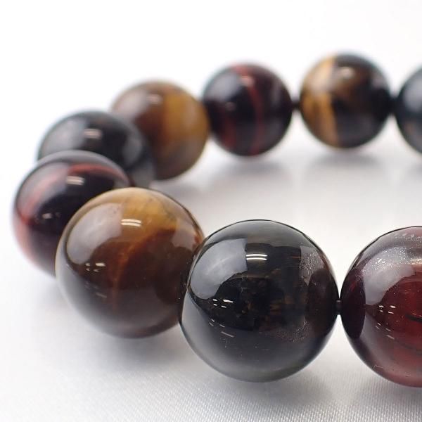 【GWセール】ミックスタイガーアイ ラウンド 15.5 - 16mm 内周15.5cm ブレスレット [X8130]