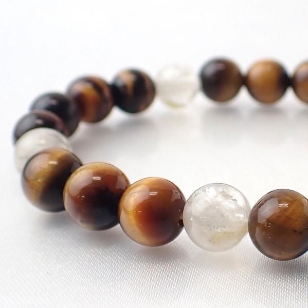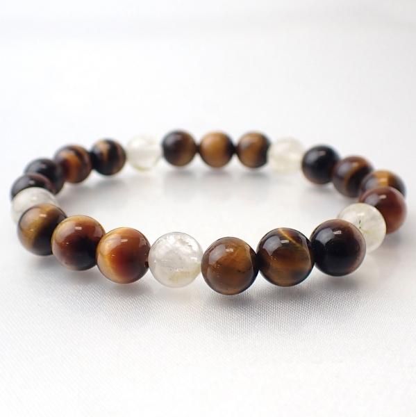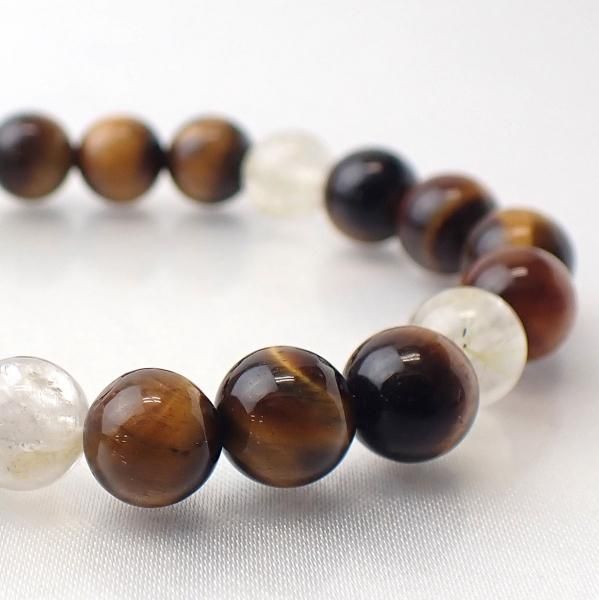【GWセール】タイガーアイ & ルチルクォーツ デザインブレスレット 内周15cm [X8138]