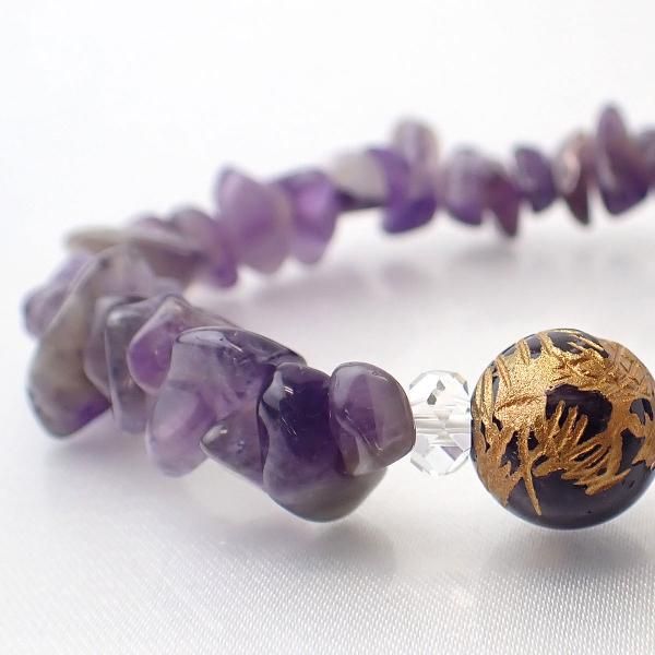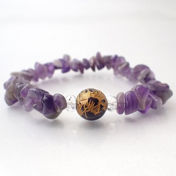 【GWセール】アメジスト 龍彫り & アメジスト デザインブレスレット 内周15cm [X8142]